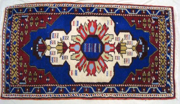 Persian Red Blue Cream Grey Persian Rug, measures approx. 40 x 23'', does not include fringe.