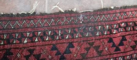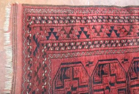 Persian Rug measuring approximately 5 feet by 7 feet. Very thin from 1900's . Red and blue with some wear on edge. Shipping $20.00. Recently cleaned