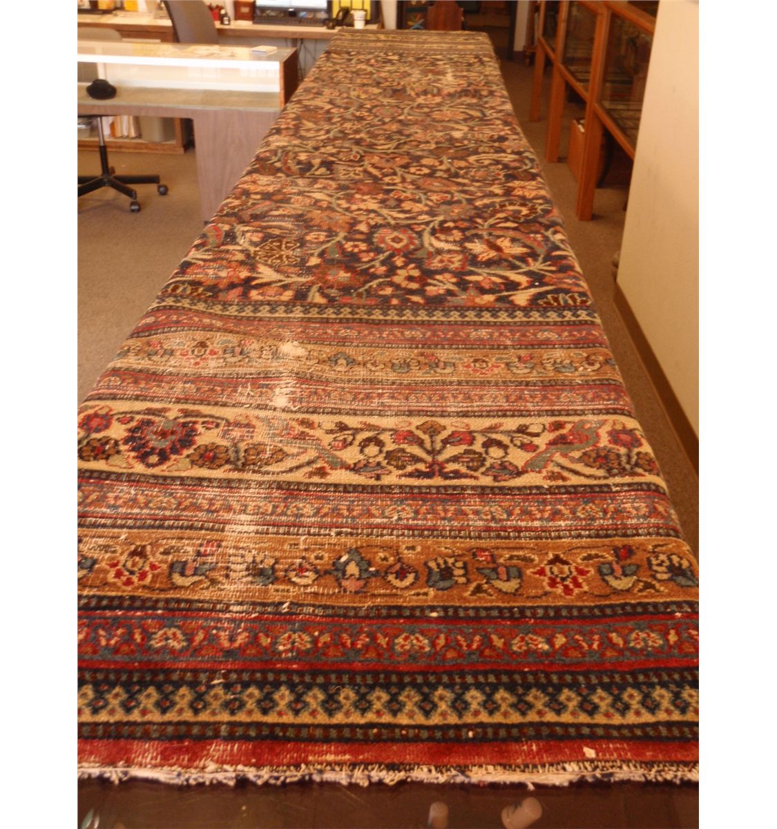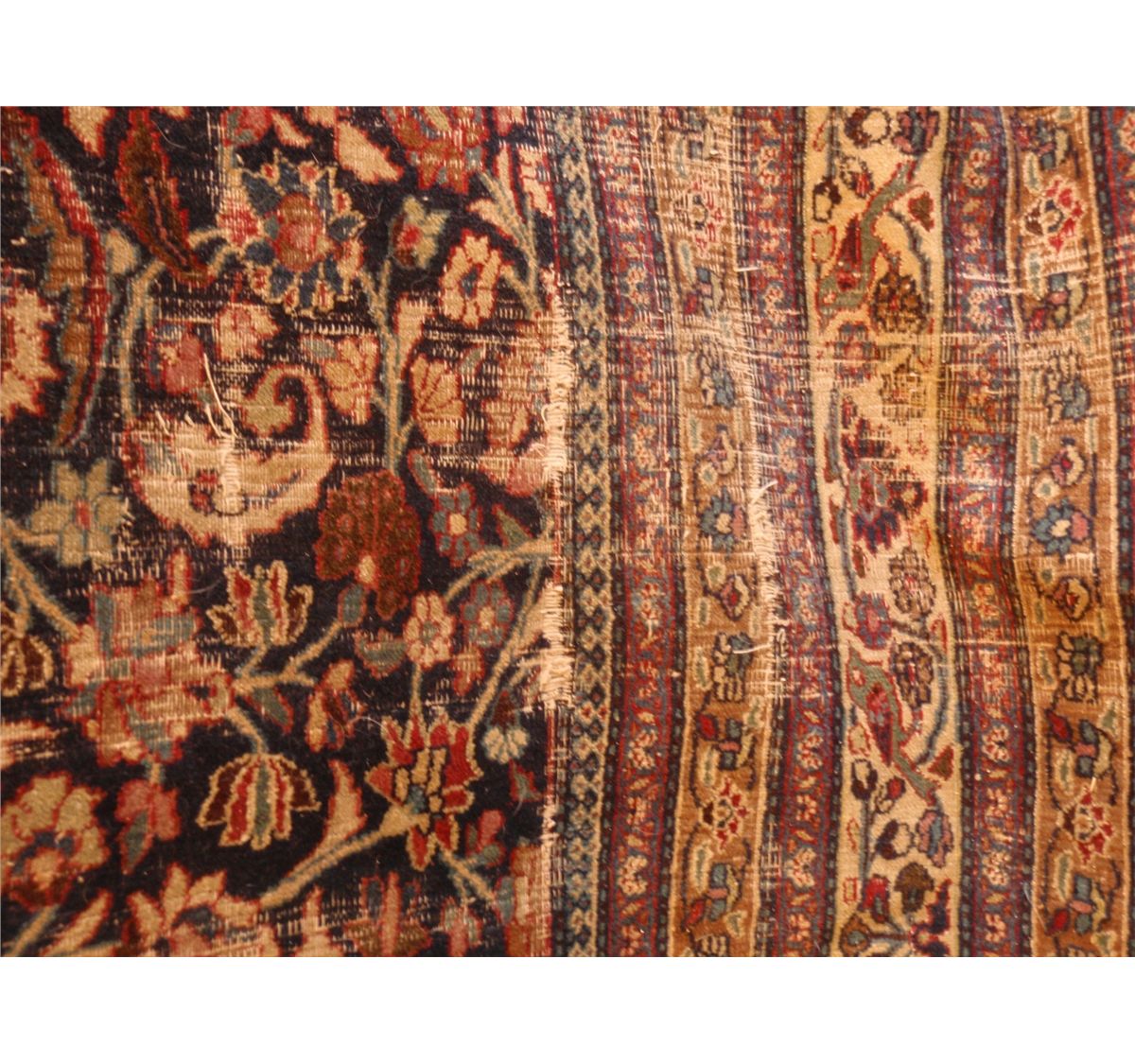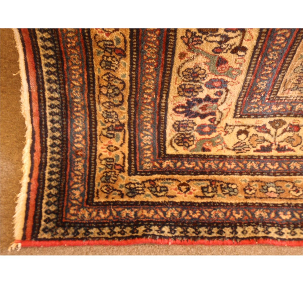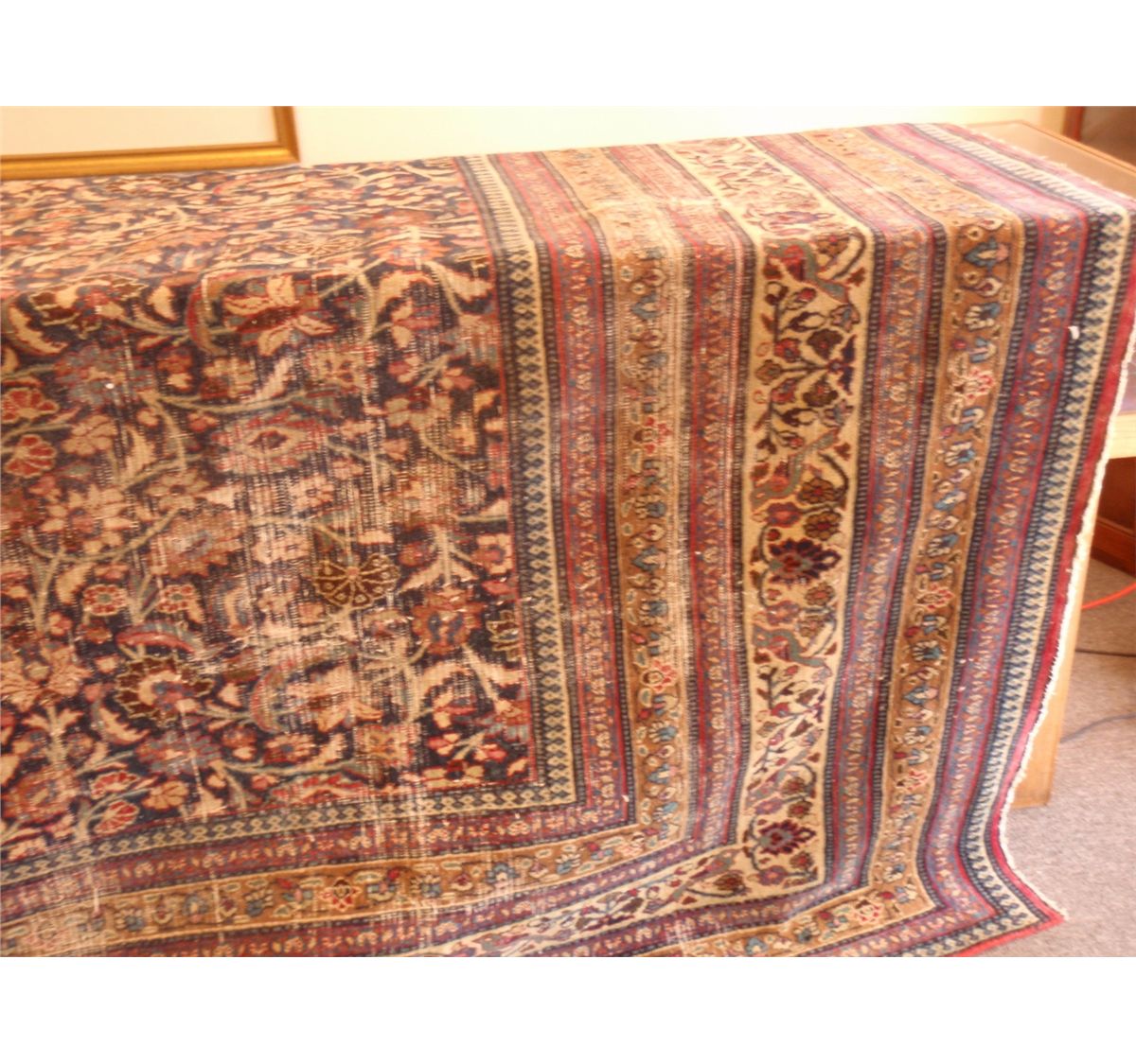 Ca. 1900 Mahal. 12' x 9'. Age appropriate wear and damage in some areas, including: Thin areas and end damge. No holes! This rug is beatiful and really is in terrific condition considering its age.
