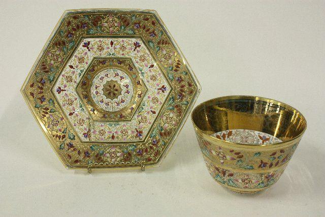 Moser style. Plate Approx. 7" Diam. Cup Approx. 4.75" Diam. x 3.5" H