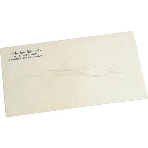 <B>Personalized Envelope with Strands of Brando's Hair.</B></I> A small white envelope with Brando's name and Beverly Hills mailing address, containing three strands of Brando's hair. The envelope is in Excellent condition with some light overall tanning and very mild wear. <I>From the collection of Marlon Brando.</B></I><BR><BR><b>Shipping:</b> Flat Material, Small (<a target="_blank" href="http://www.heritageauctions.com/common/shipping.php">view shipping information</a>)