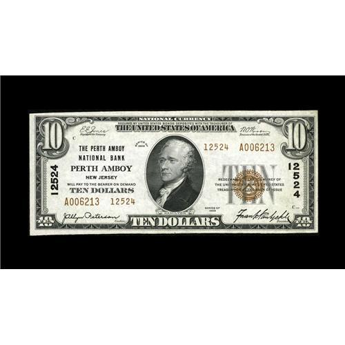 <B>Perth Amboy, NJ</B></I> - $10 1929 Ty. 2 <B>The Perth Amboy NB</B></I> Ch. # 12524<BR>This note appears fully Gem with broad margins. A light fold and some handling prevent that grade. Wholly original <B>About Uncirculated.</B></I>