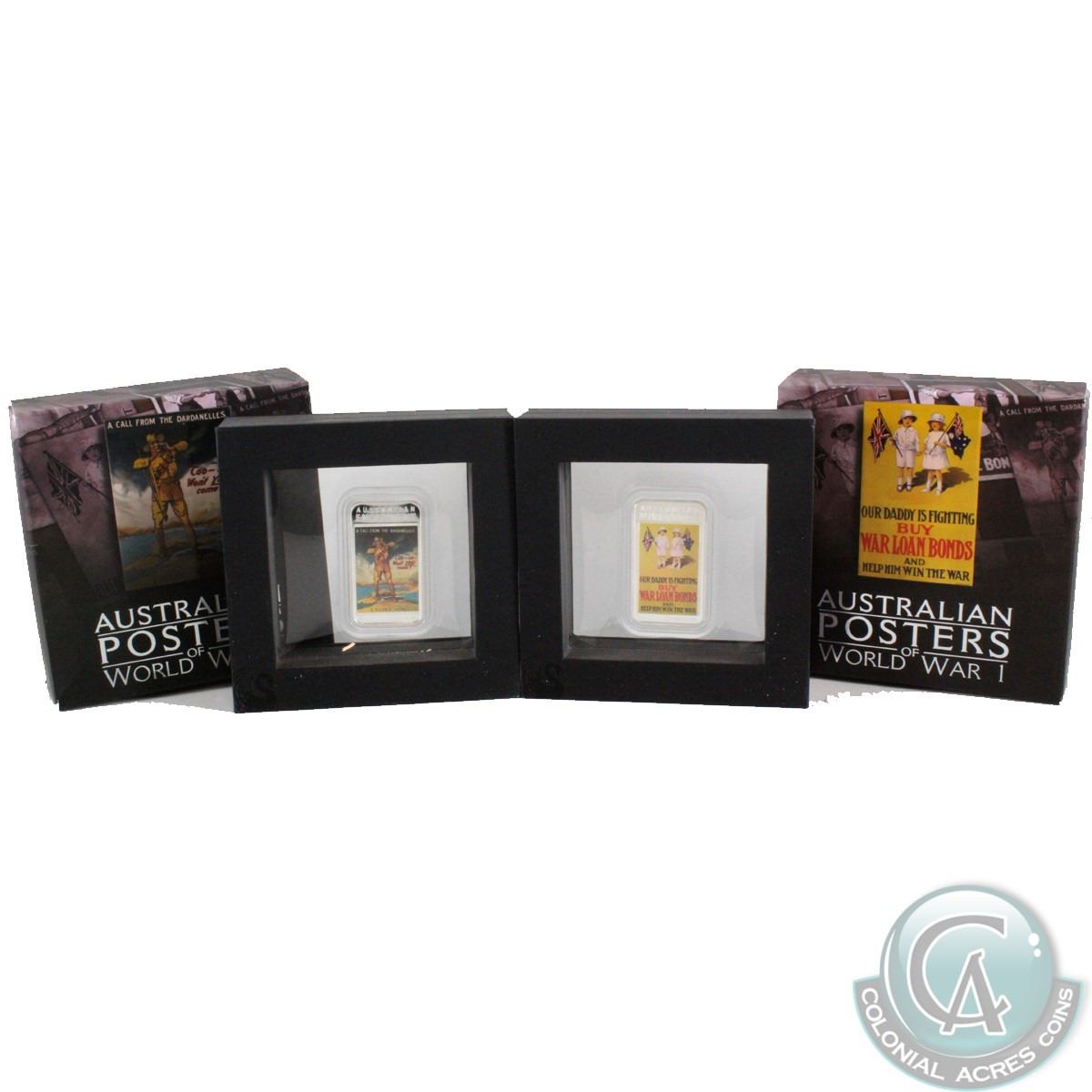 Perth Mint Issue: 2 x Australia Posters of World War I 1oz $1.00 Proof Silver Coins. You will receive the 2014 Enlistment Rectangle Coin and the 2016 War Bonds 1 oz. .999 Silver Proof Coins. 2pcs (TAX Exempt)