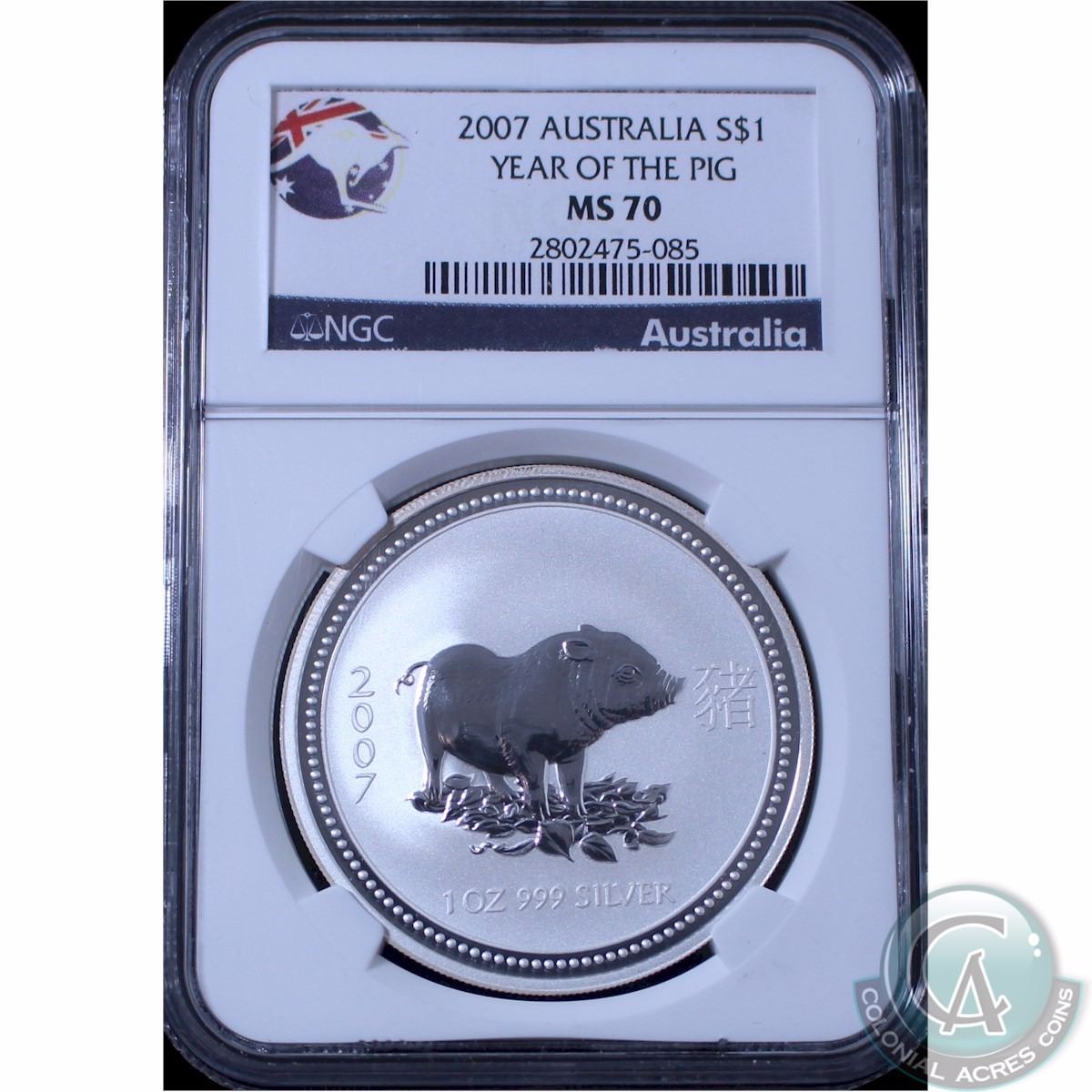Perth Mint Issue: 2007 Australia $1 Year of the Pig 1oz .999 Fine Silver Coin NGC Certified MS-70 (Tax Exempt)