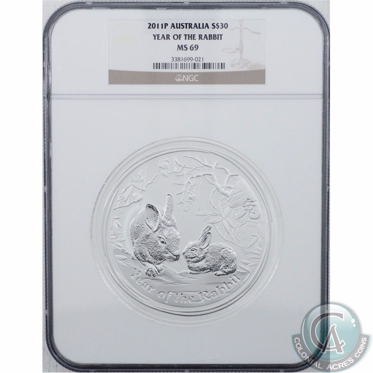 Perth Mint Issue: 2011 Australia Kilo (32.15oz.) .999 Fine Silver Year of the Rabbit NGC Certified MS-69 (TAX Exempt)