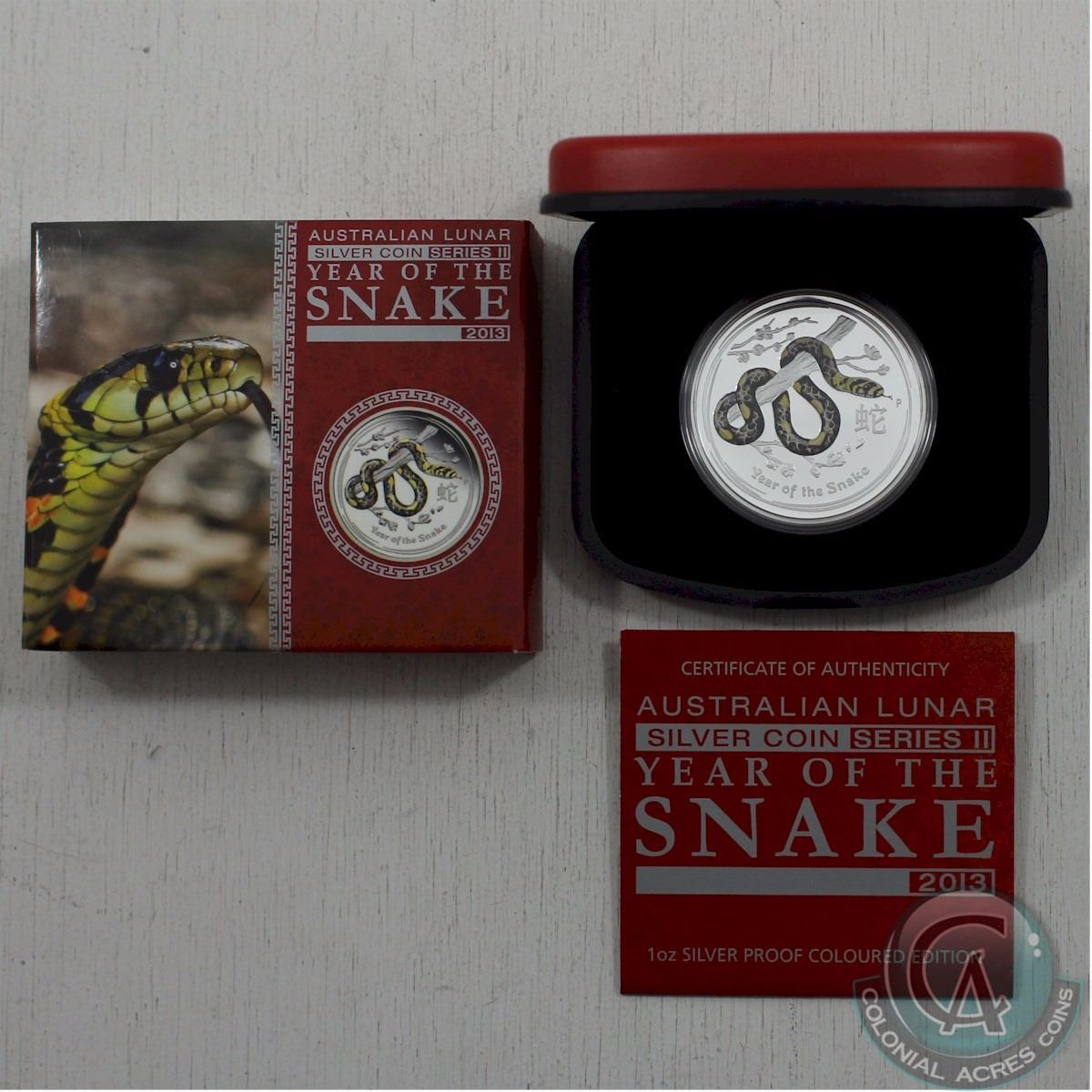 Perth Mint Issue: 2013 Perth Mint Australian 1oz. Coloured (Yellow & Black) Edition Silver Proof Coin - Year of the Snake (TAX Exempt)