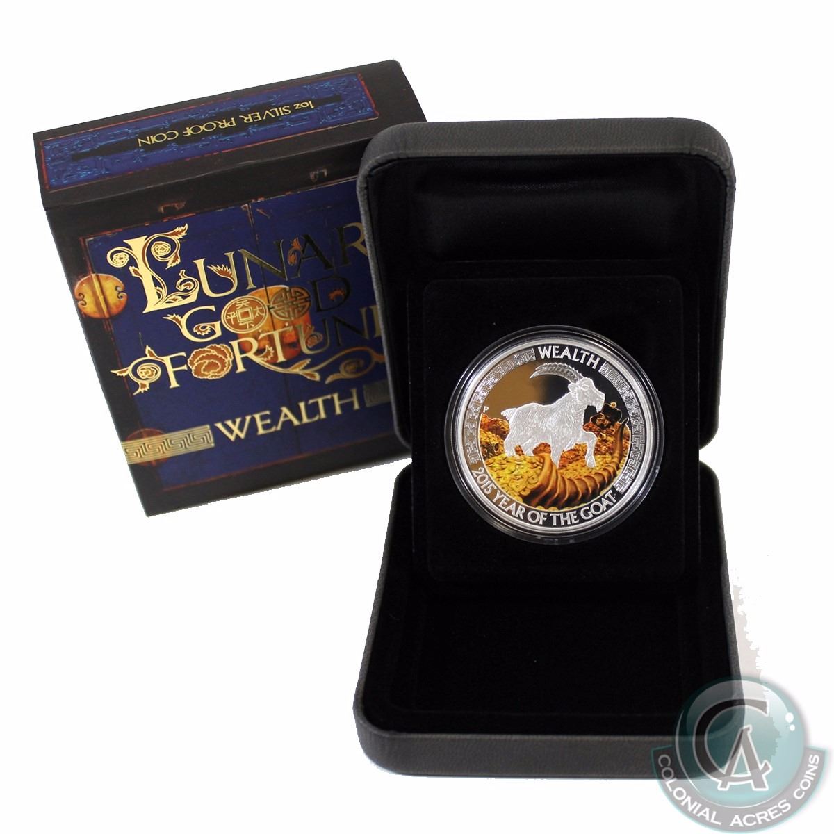 Perth Mint Issue: 2015 Tuvalu Lunar Good Fortune - Year of the Goat Wealth 1oz .999 Fine Silver Proof Coloured (TAX Exempt)