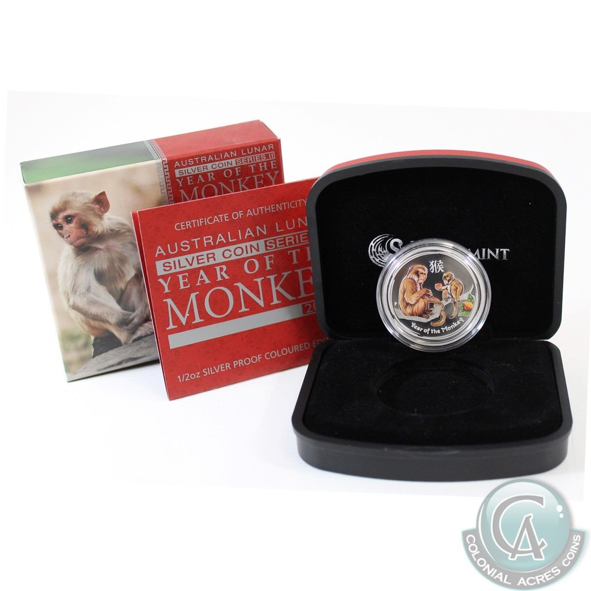 Perth Mint Issue: 2016 Australia 50-cent Year of the Monkey 1/2oz .999 Fine Silver Coloured Proof Coin (TAX Exempt)