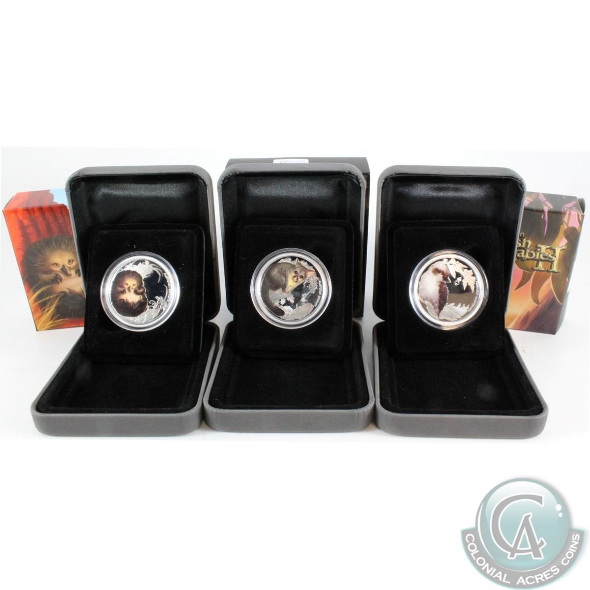 Perth Mint Issue: 3x Australia Bush Babies II Series 50-cent 1/2 oz. Proof Silver Coins. You will receive the 2012 Australia Bush Babies Kookaburra, 2013 Bush Babies Possum, and the 2013 Bush Babies Echidna Silver Proof Coins. 3pcs (TAX Exempt)