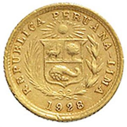 Peru'. 1/5 libra 1928. Fr.75. AU. qFDC.
