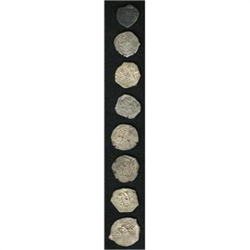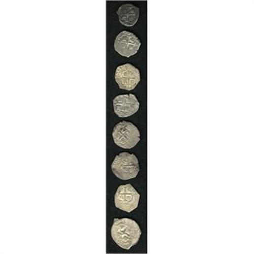 <B>Assorted Lima Cob 1 Reals,</B></I> Carlos II KM20, seven examples: 1684, 1685, 1686, 1687, 1689, 1693 and 1700; and Felipe V KM1 1708. A very nice group with no holed or mounted examples, and many with full crosses. <B>Sold as is, no return lot.</B></I><BR><BR><b>Shipping:</b> Coins & Currency (<a target="_blank" href="http://www.heritageauctions.com/common/shipping.php">view shipping information</a>)