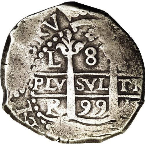 <B>Carlos II cob 8 Reales 1699-R Lima, </B></I>KM24, VF, nicely struck details on the obverse with bold date, mint and assayer.<BR><BR><b>Shipping:</b> Coins & Currency (<a target="_blank" href="http://www.heritageauctions.com/common/shipping.php">view shipping information</a>)