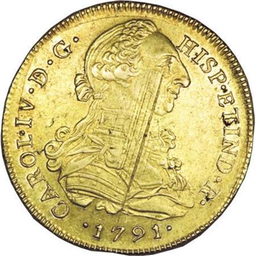 Peru Carlos IV gold 8 Escudos 1791-IJ, KM92,