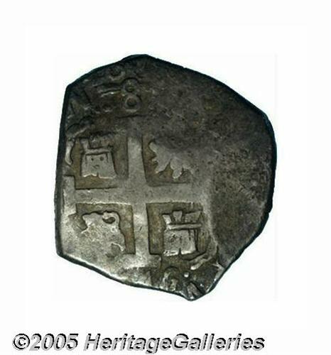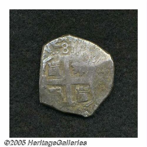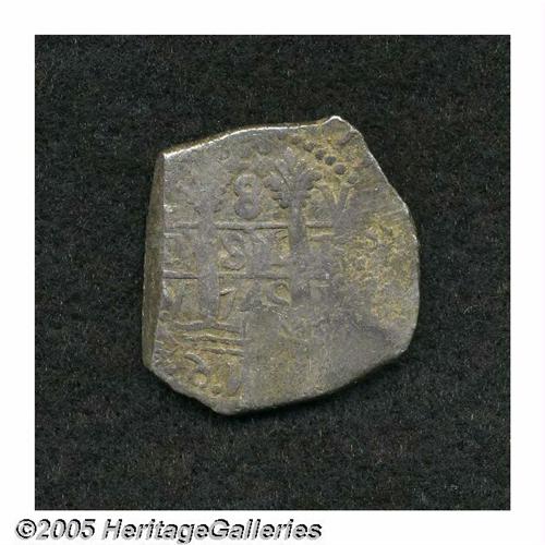 <B>Felipe V 8 Reales 1745-V, </B></I>KM34a, Calbeto 322 (the plate coin), toned VF, full date and an unusually strong obverse strike. A portion of the reverse date is readable below the cross. Rare date.
