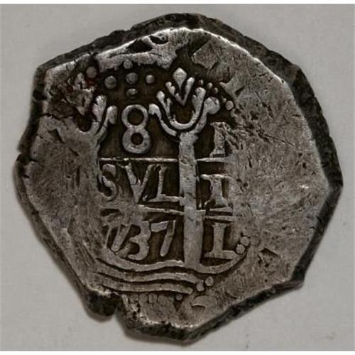<B>Felipe V Cob 8 Reales 1737L-N,</B></I> KM34a, crude VF, bold date and mint, partially readable assayer.<BR><BR><b>Shipping:</b> Coins & Currency (<a target="_blank" href="http://www.heritageauctions.com/common/shipping.php">view shipping information</a>)