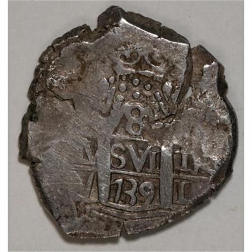 <B>Felipe V Cob 8 Reales 1739L-V,</B></I> KM34a, VF, large planchet crack and associated flaw on the reverse, bold date and mintmark, and the assayer is mostly readable.<BR><BR><b>Shipping:</b> Coins & Currency (<a target="_blank" href="http://www.heritageauctions.com/common/shipping.php">view shipping information</a>)