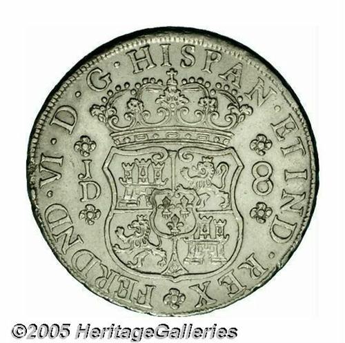<B>Ferdinand VI Pillar 8 Reales 1755-JD, </B></I>KM55.1, sharp XF, lightly cleaned but very presentable and otherwise defect-free.