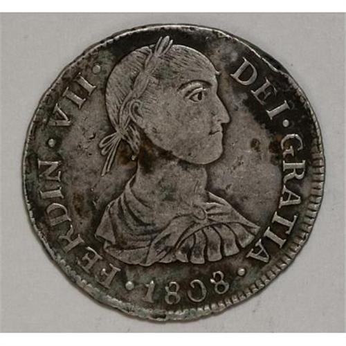 <B>Ferdinand VII 2 Reales 1808-JP,</B></I> KM104.2, Lima bust with FERDIN, nearly VF, well-struck design features, light surface patination on the obverse. Very scarce date and type.<BR><BR><b>Shipping:</b> Coins & Currency (<a target="_blank" href="http://www.heritageauctions.com/common/shipping.php">view shipping information</a>)