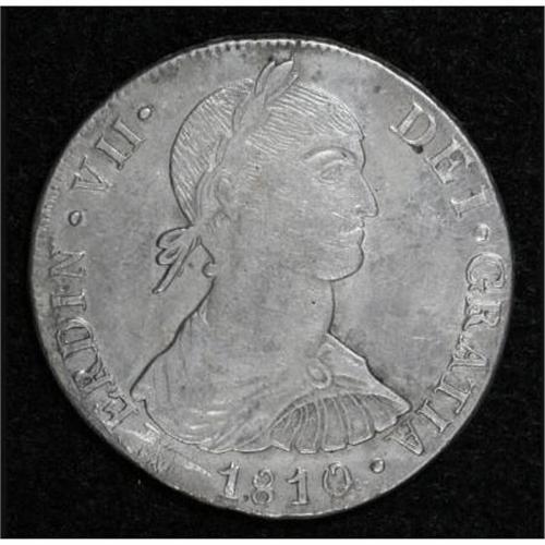 <B>Ferdinand VII 8 Reales 1810-JP,</B></I> KM106.2, Lima bust, XF, crudely struck on a slightly out-of-round planchet causing an incomplete strike at 5 o'clock on the reverse. Cleaned with some original luster and minor surface porosity.<BR><BR><b>Shipping:</b> Coins & Currency (<a target="_blank" href="http://www.heritageauctions.com/common/shipping.php">view shipping information</a>)