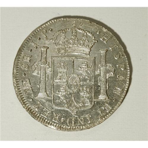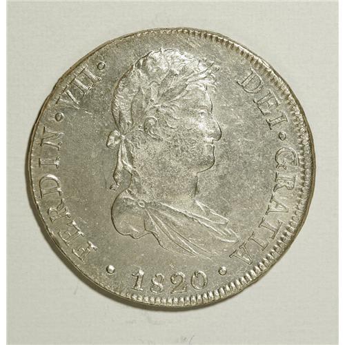 <B>Ferdinand VII 8 Reales 1820-JP, </B></I>KM117.1, choice AU-UNC, full luster and a very decent strike for this era.<BR><BR><b>Shipping:</b> Coins & Currency (<a target="_blank" href="http://www.heritageauctions.com/common/shipping.php">view shipping information</a>)