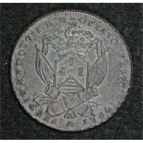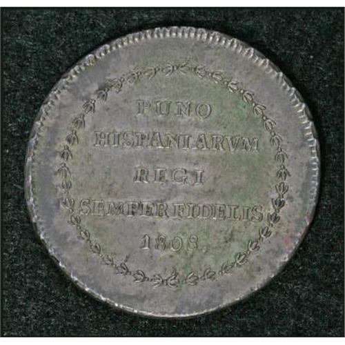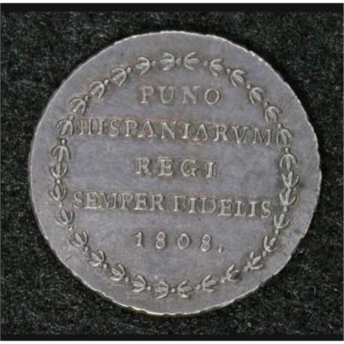 <B>Ferdinand VII Silver Proclamations 1808,</B></I> Medina 351 and 352, the 8 Reales and 2 Reales sized medals for the city of Puno. Both pieces are choice toned AU - a very attractive pair.<BR><BR><b>Shipping:</b> Coins & Currency (<a target="_blank" href="http://www.heritageauctions.com/common/shipping.php">view shipping information</a>)