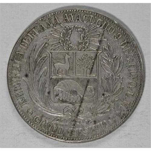 Peru Republic 5 Pesetas 1882 Ayacucho, KM201.3,