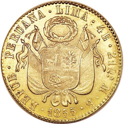 Peru: Republic gold 4 Escudos 1855-MB, F-64, KM1