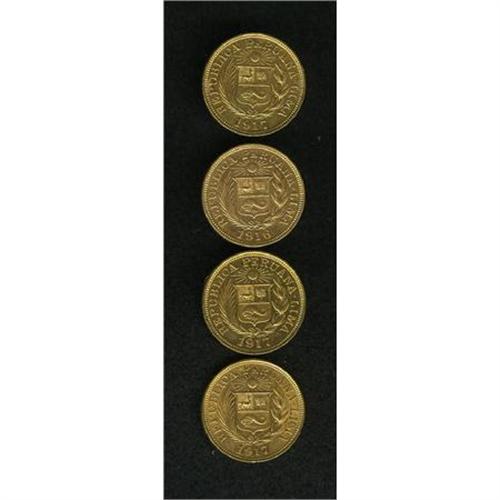<B>Republic gold Libra Foursome,</B></I> KM207, four World War I issues, 1916 AU-UNC, 1917 (3), XF, XF-AU and AU. <B>Sold as is, no return lot.</B></I><BR><BR><b>Shipping:</b> Coins & Currency (<a target="_blank" href="http://www.heritageauctions.com/common/shipping.php">view shipping information</a>)