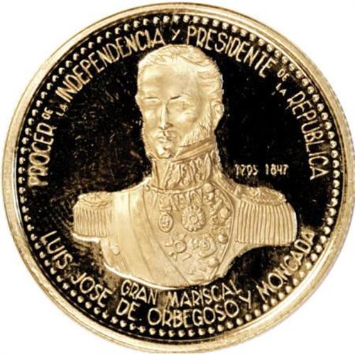 <B>Republic gold Nuevo Sol 1995,</B></I> appears to be unlisted in the SCWC and Friedberg, choice cameo Proof, struck to honor Gran Mariscal Luis Jose de Orbegoso Y Moncada, 16.82 grams. <BR><BR><b>Shipping:</b> Coins & Currency (<a target="_blank" href="http://www.heritageauctions.com/common/shipping.php">view shipping information</a>)