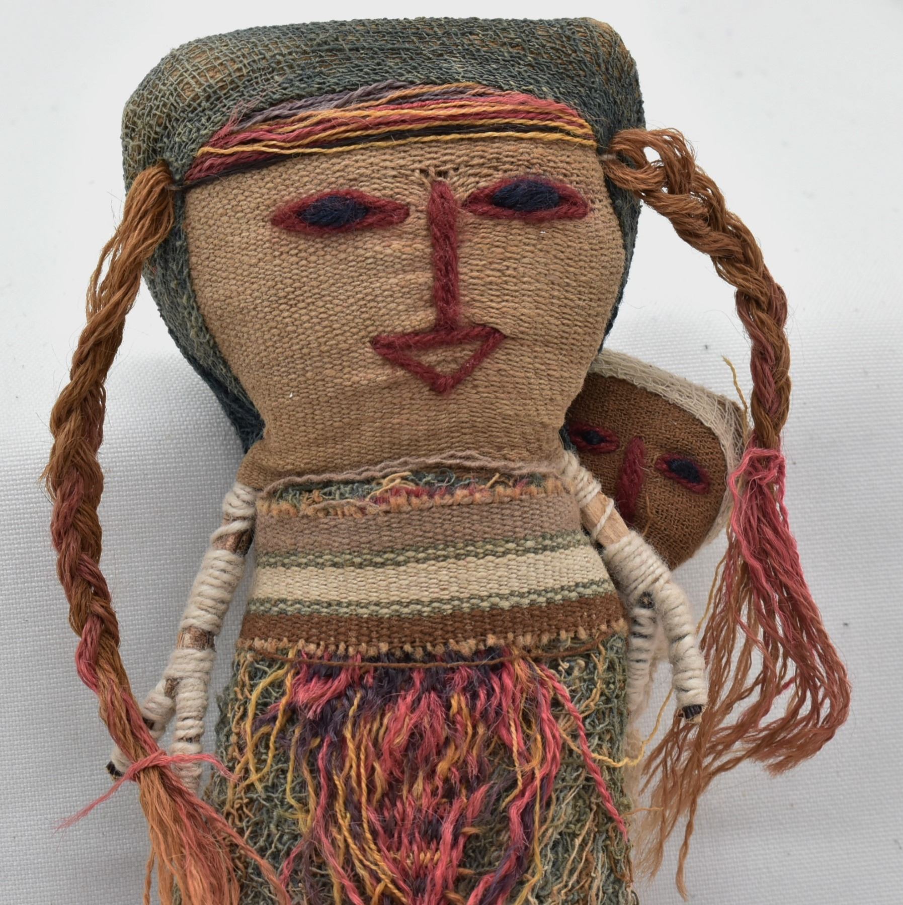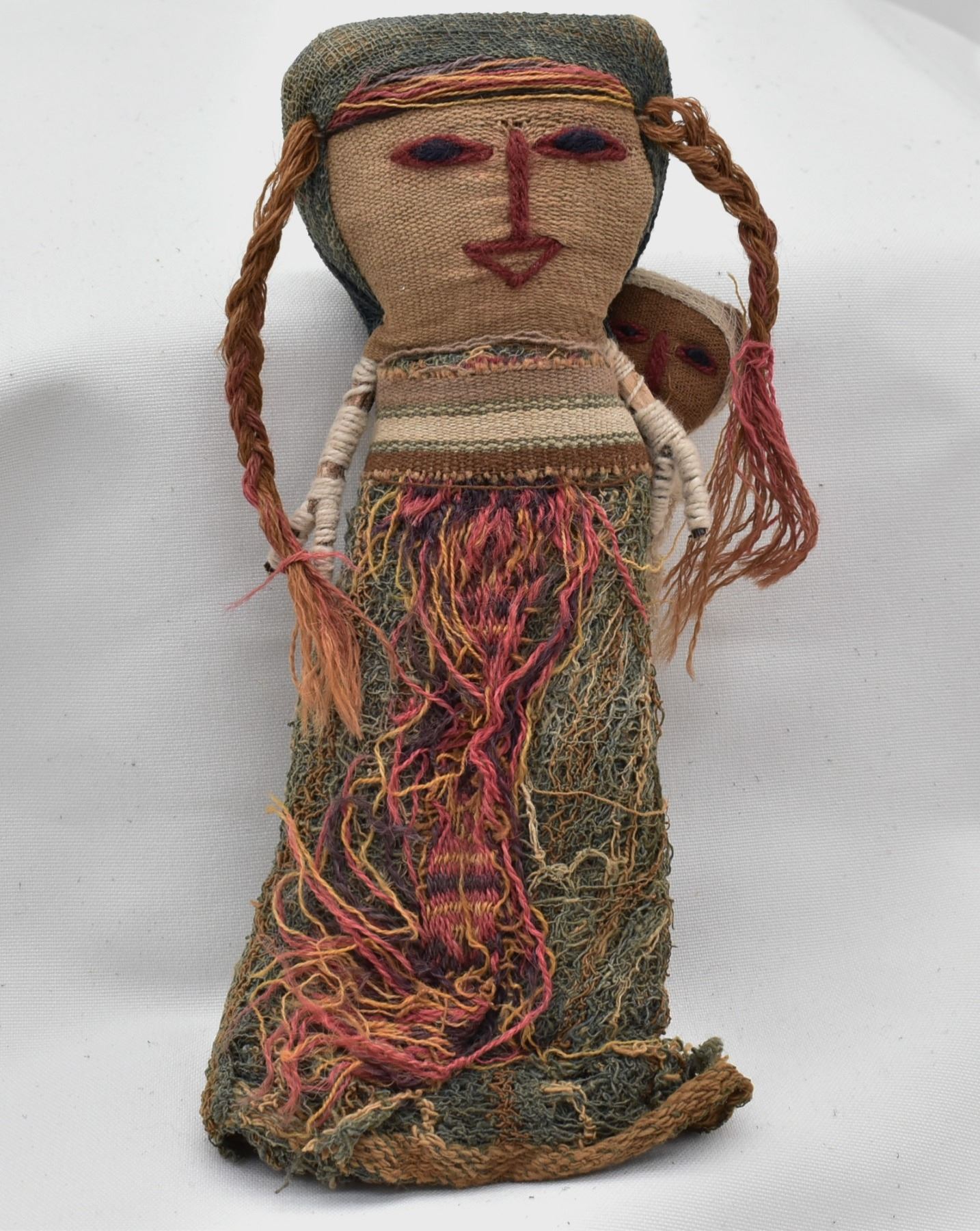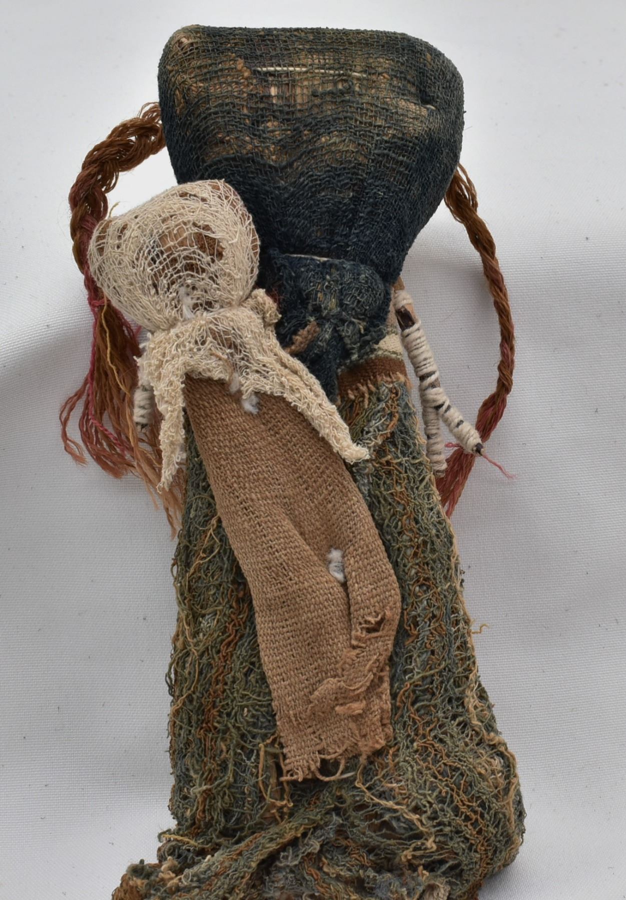 Peruvian Chancay Cloth Doll, antique dress on new cloth doll, measures 3.5'' x 8''