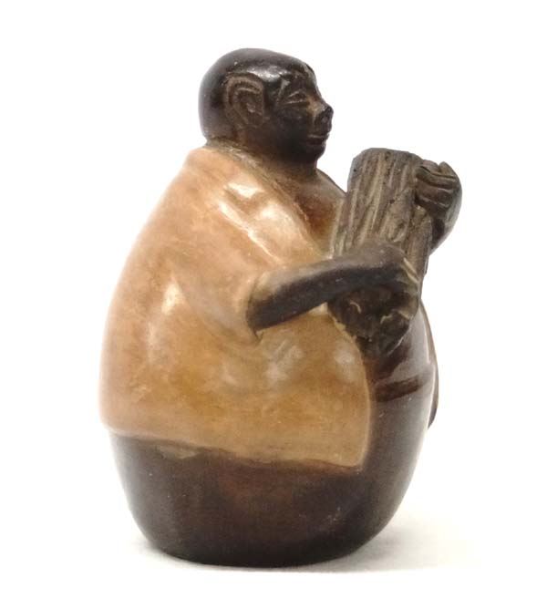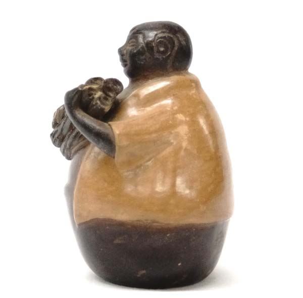 Peruvian Chulucanas Pottery Wood Gatherer by J. Hunga V., measures 3'' x 3'' x 4'', signed on bottom of piece