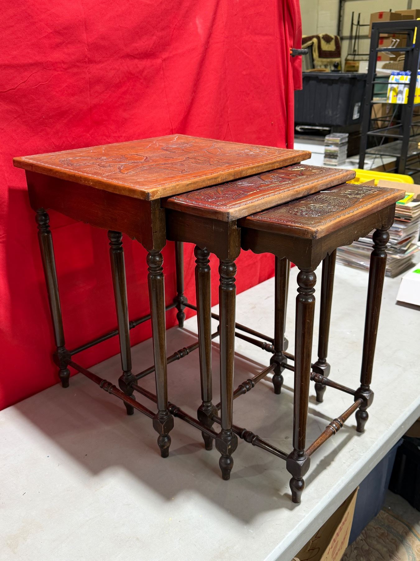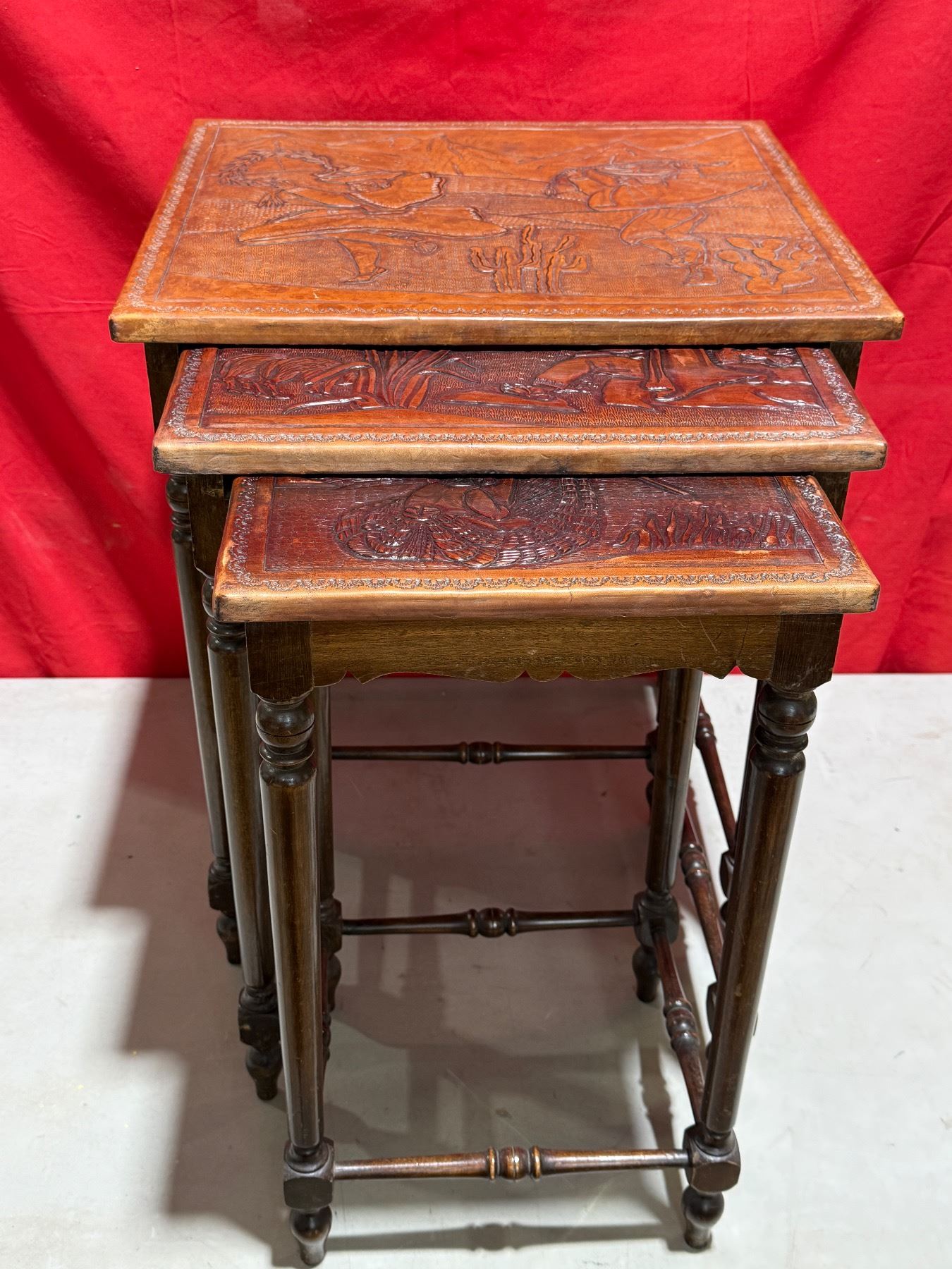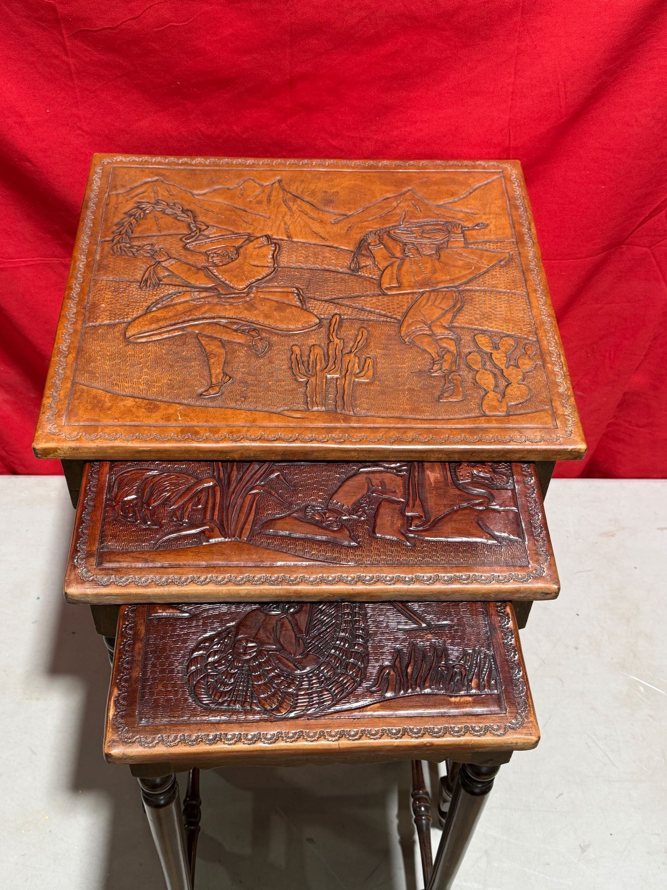 Peruvian Embossed Wood Nesting Tables