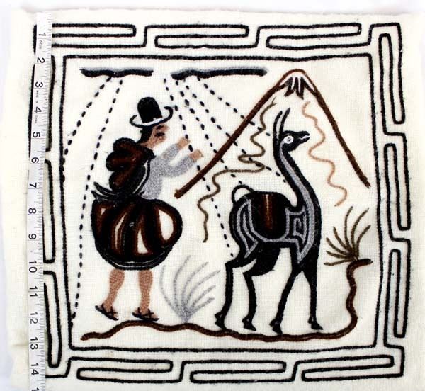 Vintage Peruvian Embroidered Pillow Cover, measures 16'' x 17''