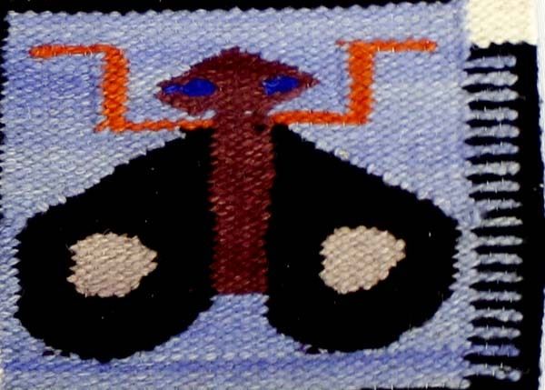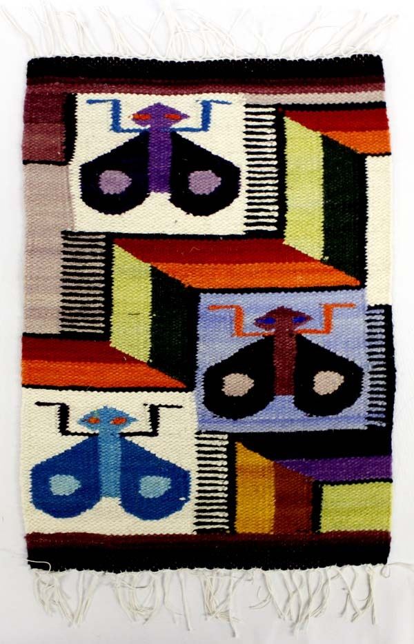 Peruvian Fringed Textile, bug motif, beautiful vibrant colors, measures 12'' x 15'', fringed on both ends