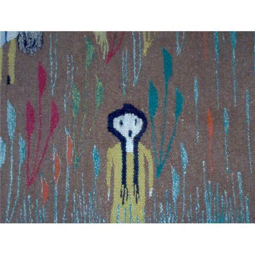 <table width="100%" border="0" cellspacing="0" cellpadding="4"><tr><td><em> </em></td></tr><tr> <td width="100%"> I bought this rug at an antique mall in Florida. The tag on the rug identified it as a "Peruvian Story Telling Rug". The wool is alpaca. It does need to be cleaned. there is overall soiling. I do not see any spesific areas of staining. It just needs a good cleaning. I was struck by the obvious reference to Edvard Munch!!! THE SCREAM. Or, mere coincidence? Truly, this is an outstanding work of art </td></tr><tr> <td> </td></tr><tr> <td>Reference #: 726</td></tr><tr><td>Condition:good</td></tr><tr><td>Year:1950?</td></tr><tr><td>Country:Peru</td></tr><tr><td>Maker:Peruvian indian</td></tr><tr><td>Height:50</td></tr><tr><td>Width:67</td></tr><tr><td>Title:Peruvian Pictorial Weaving</td></tr><tr><td>Style:modern design</td></tr><tr><td>Type:modern design</td></tr><tr><td>Location:Louisiana,MO</td></tr></table>