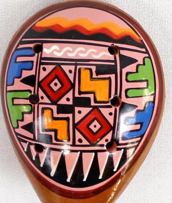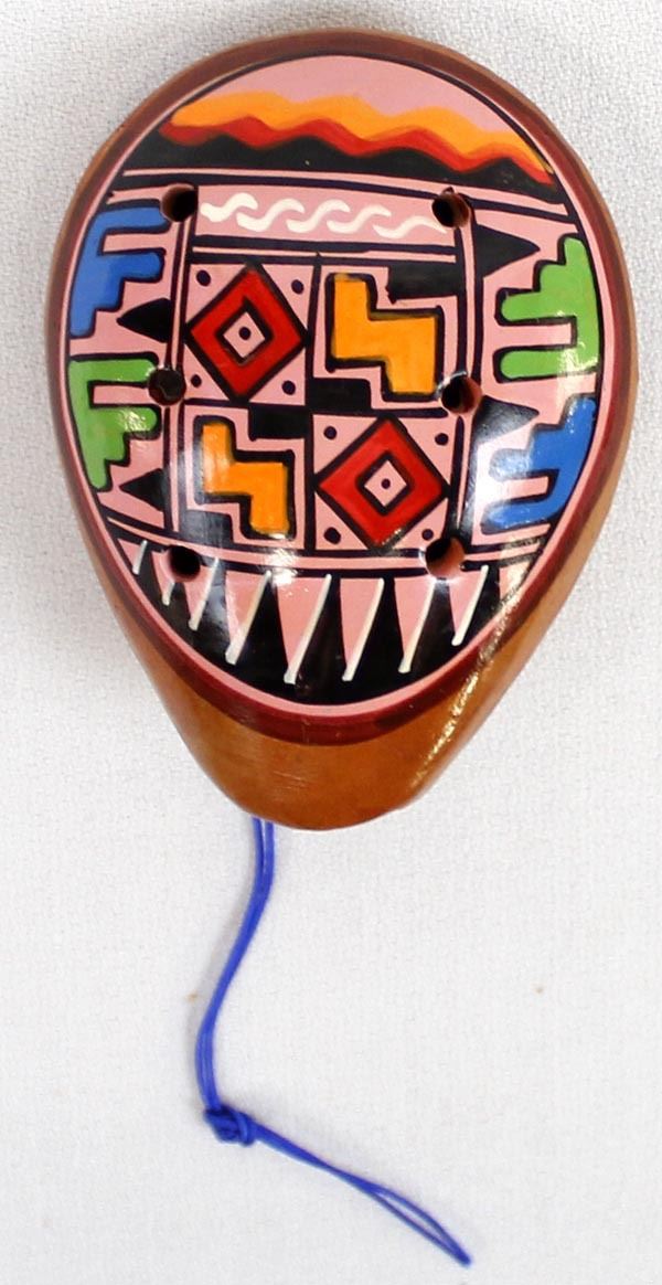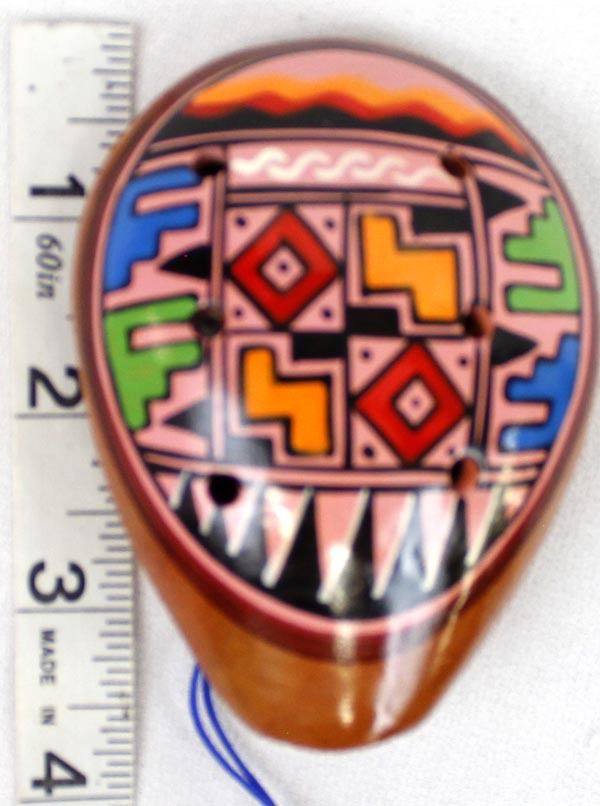 Peruvian Pottery Ocarina, measures 2.5'' x 3'' x 5'', hand painted