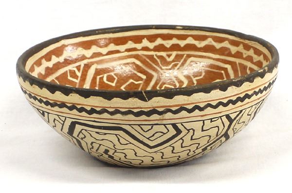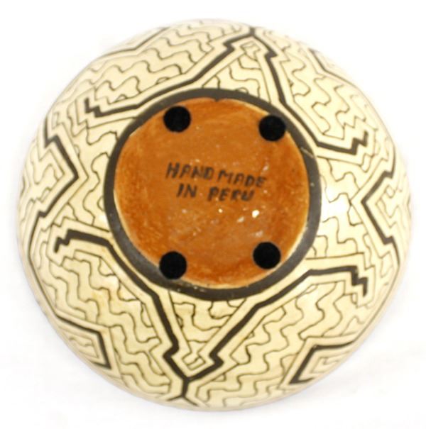 Peruvian Shipibo Polychrome Pottery Bowl, measures 3.5''H x 8.5''D, marked Hand Made in Peru on the bottom, beautiful bowl