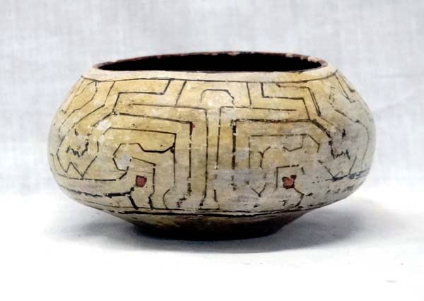 Peruvian Shipibo Pottery Jar, measures 5''D x 2.75''H