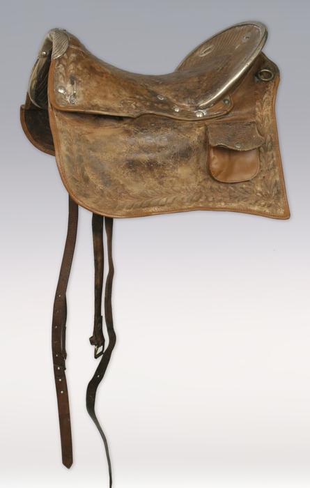 Peruvian Silver Mounted Saddle. Silver marked "D. Chavez Taller Huancavelic". Saddle shows discoloration from use and age and wear. Rare item! Condition Report: Saddle shows discoloration from use and age and wear.