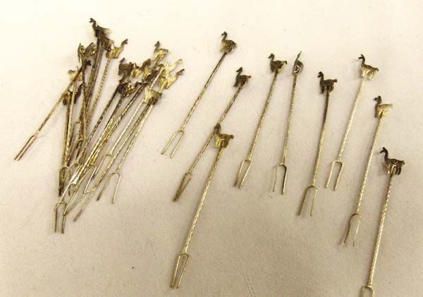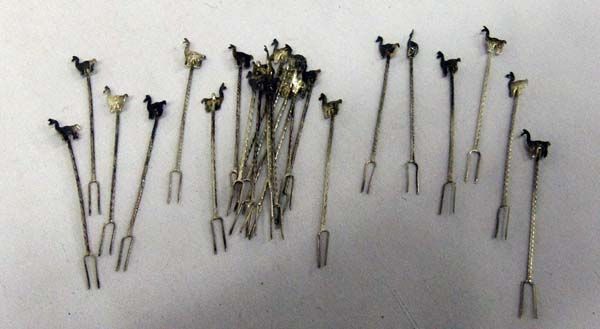 Peruvian Sterling Silver Llama Canape Forks. Set of 14 sterling canape forks, measuring 3'' in length.