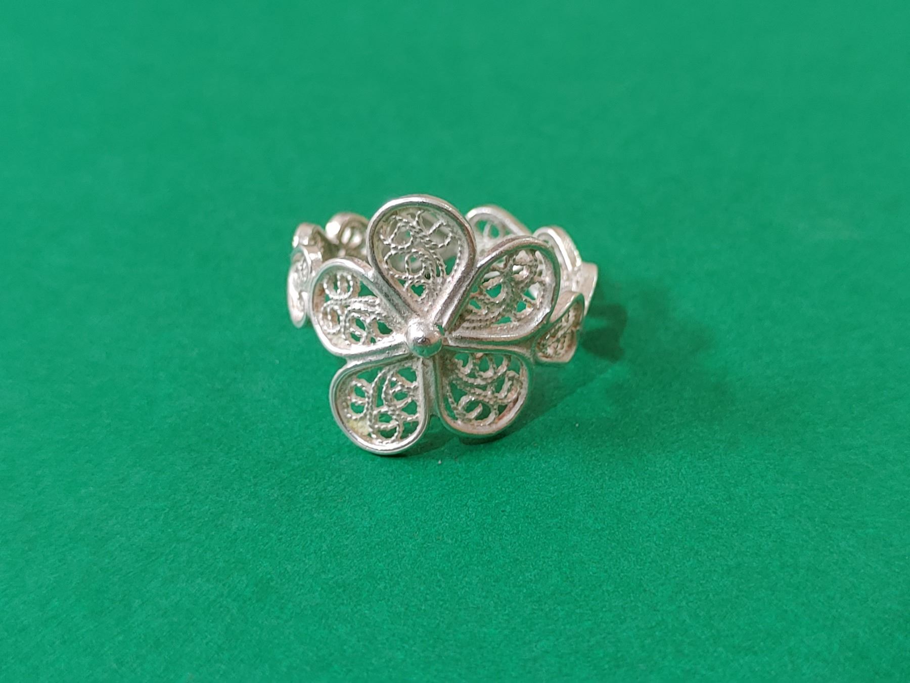 “It is a Peruvian ring made of 950 silver threads (filigree). It shows a unique detail.