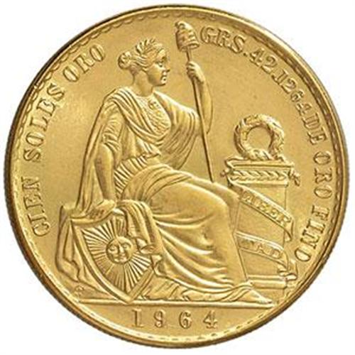 Monete e Medaglie Estere. Perù. 100 soles 1964. Fr.78. AU. FDC.