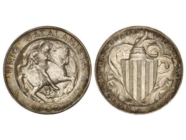 Peseta System: Catalonian Union - 1 Peseta. 1900. BARCELONA. AR. Restos de pátina irisada. EBC.