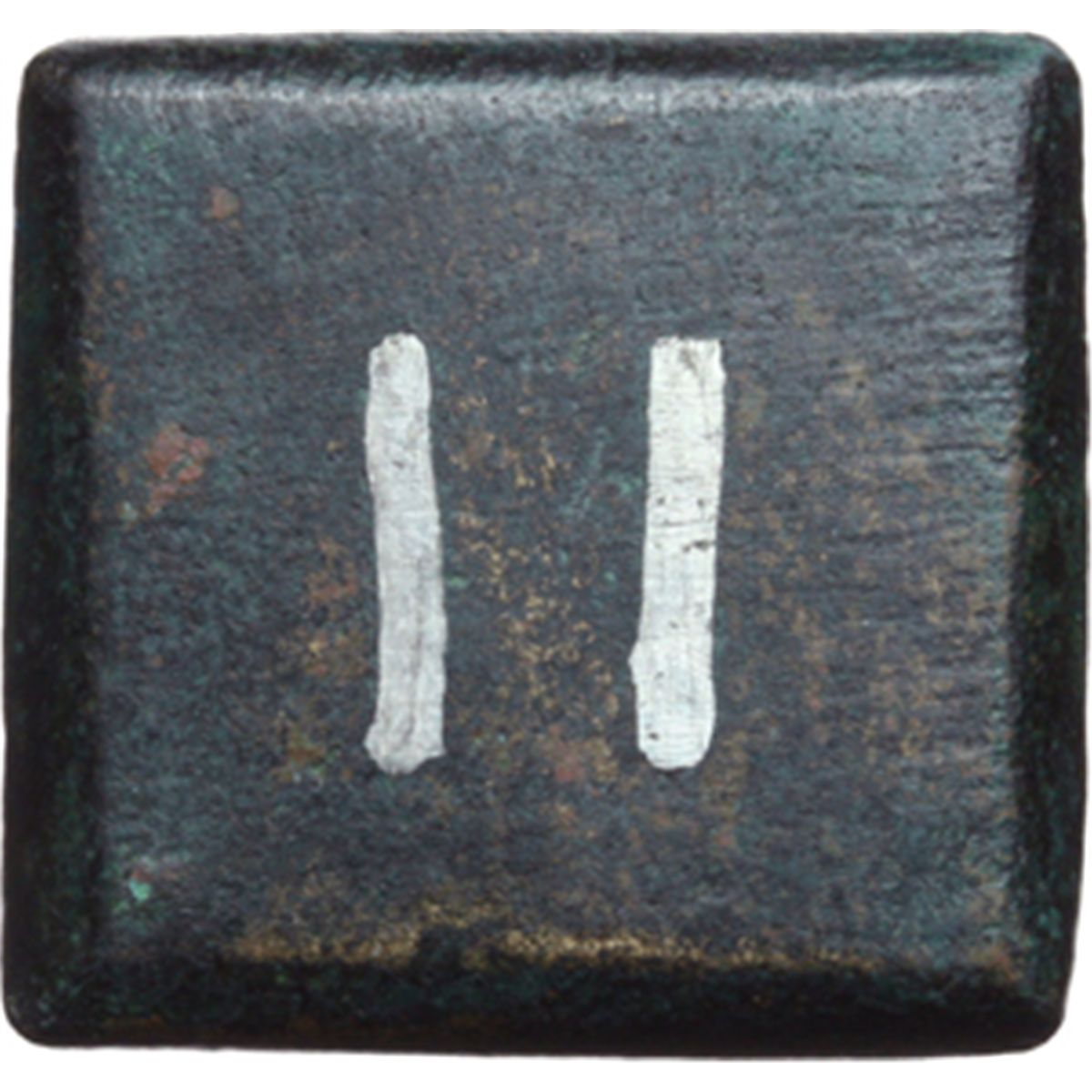 Impero Bizantino. Peso. Peso da due nomismata. D/ I I in intarsio d'argento. R/ Liscio. AE/AG. g. 8.56 R. Dimensioni: 18x17x3mm. SPL.