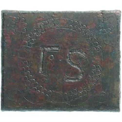 Monete Bizantine. Peso da 6 once. VI sec. d.C. D/ G (= uncia) S (= 6) entro doppio cerchio perlinato. Nei due angoli superiori, rosette. In basso, decorazione a volute. Bendall a. O. n.58. gr. 173.01 RR. AE. 4,1 x 5 x 1,1 cm. SPL. Patina cuoio con sfumature verdi.