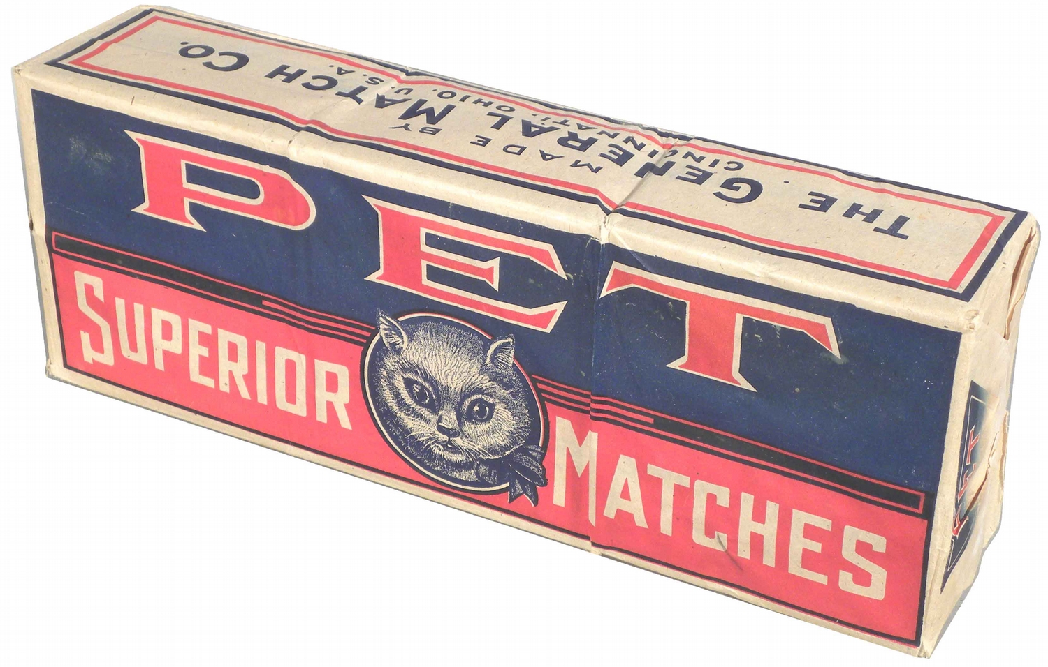 Pet Superior Matches. 3 boxes in original paper package. A few minor tears otherwise excellent condition. 15 X 5 1/2 X 5 1/2 inches.