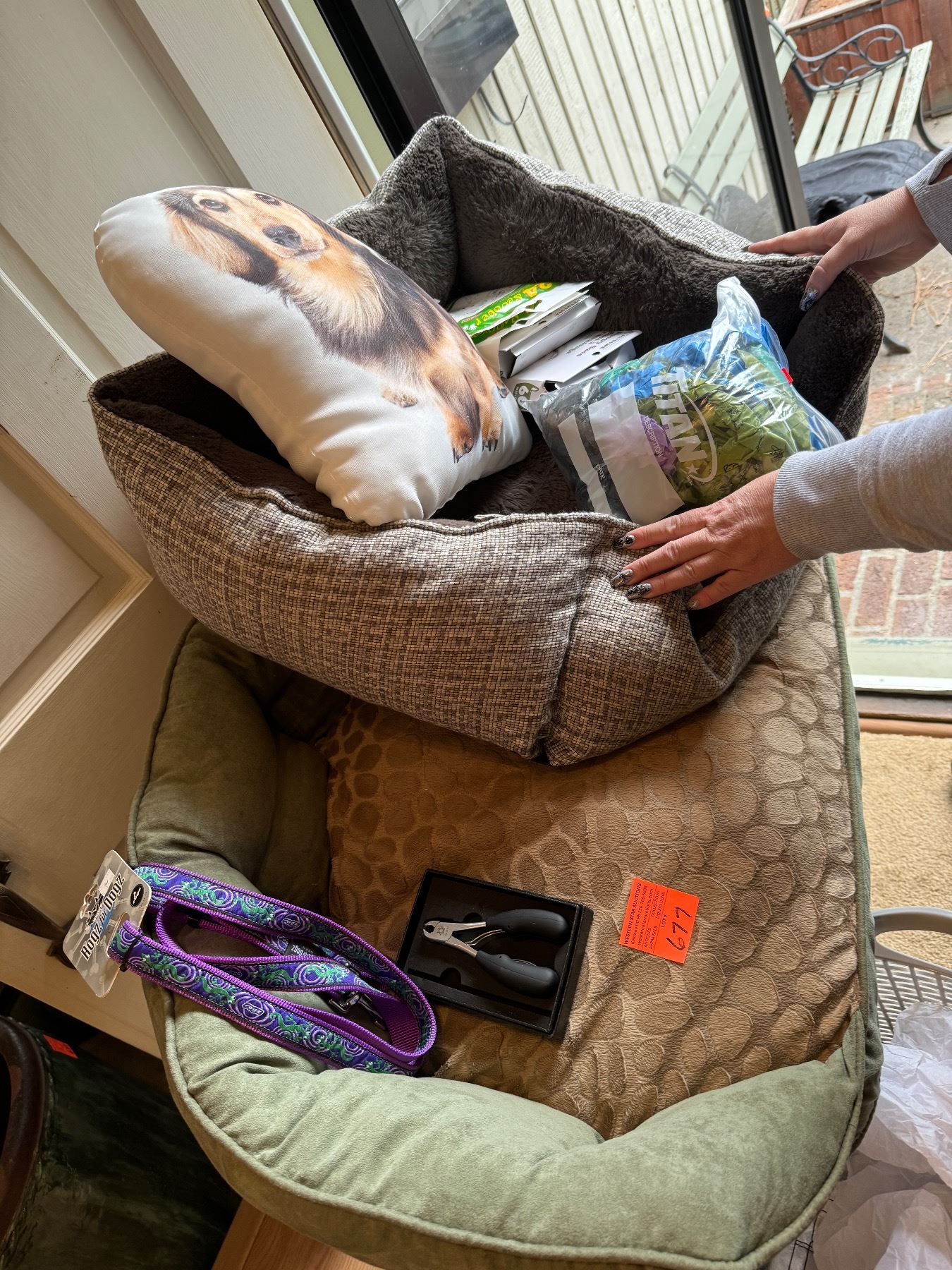 Pet beds and other items, poop socks, etc.