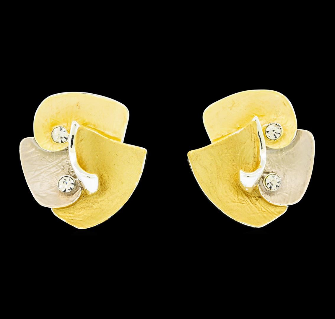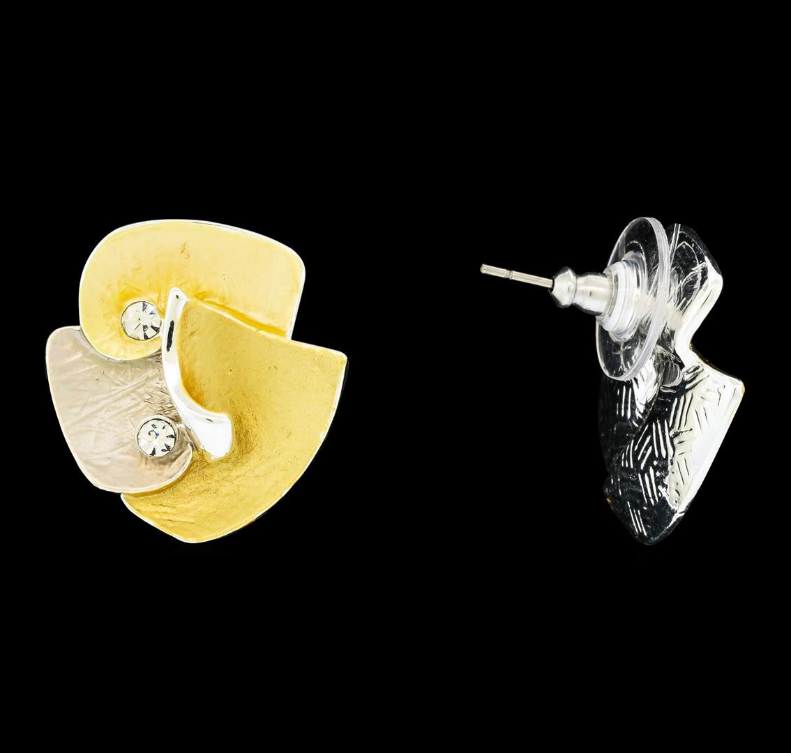 High end designer jewelry. Petal Crystal Earrings - Rhodium Plated. Rhodium Plated Set. Slv/ Gld/ Cafe. Post. Total Weight: 6.3 grams.