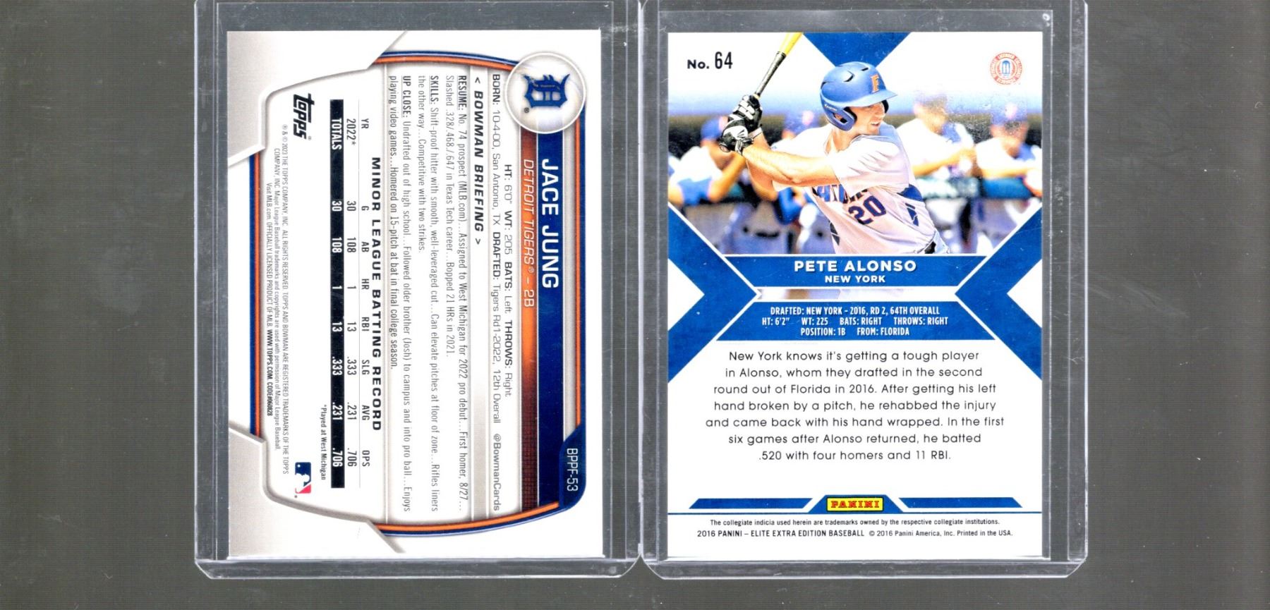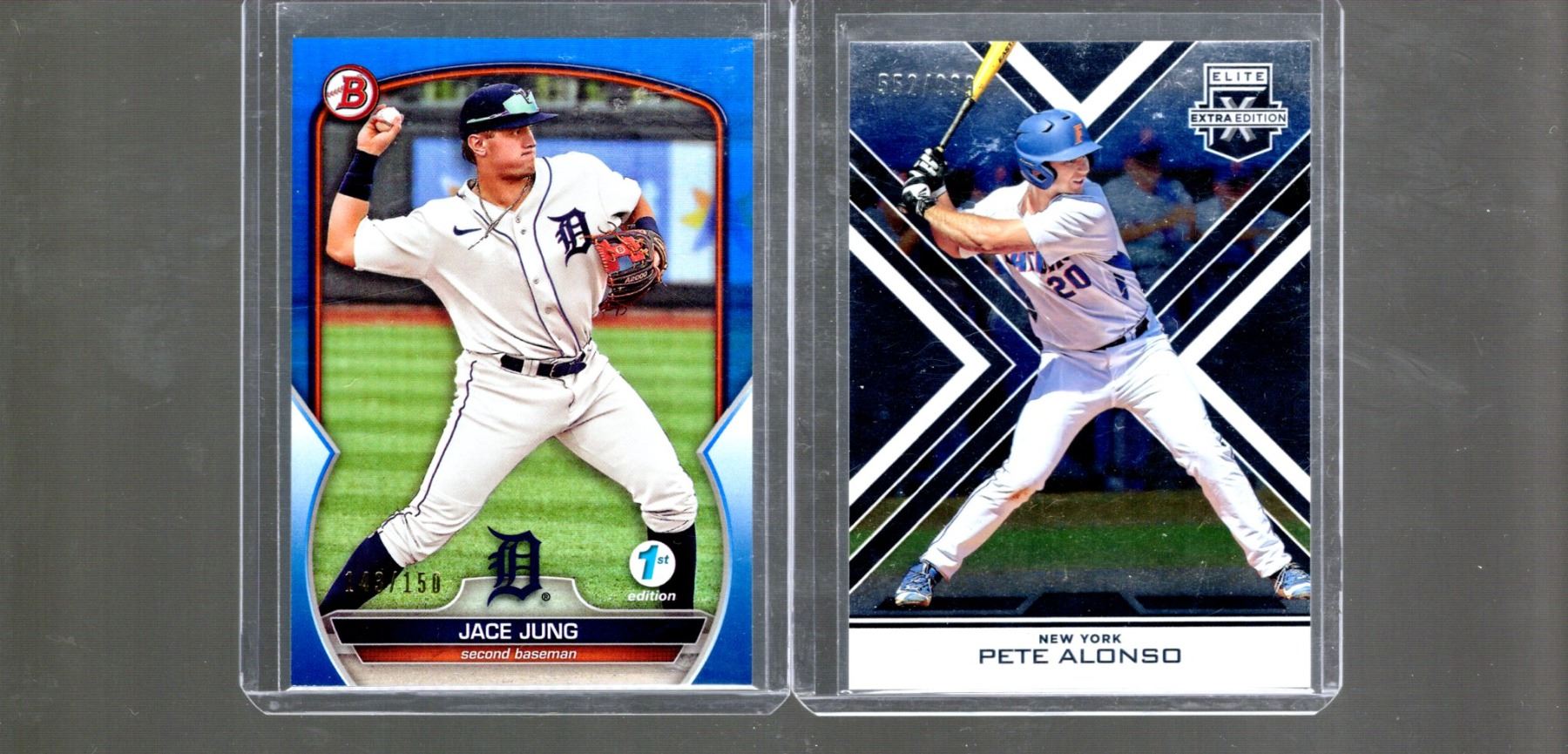 Pete Alonzo 2016 - #552/999 Elite Extra Edition, Jace Jung #143/150 - 2023 Bowman 1st Edition Blue
