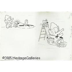 <B>Pete Alvarado (attributed) - March of Comics #359 Baby Snoots and Uptight Mouse Cover Original Art (Western, 1971).</B></I> Baby Snoots and Uptight Mouse frolic in the water in this wrap-around cover art. The cover images measure 10.25" x 9" and 10" x 5", and the art is in Excellent condition. A copy of the comic book is included in this lot. Covers don't come much cuter than this, so bid accordingly!